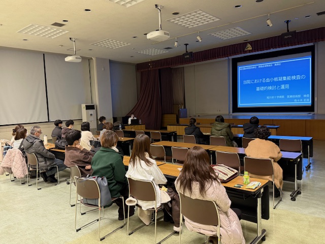 令和7年12月18日(木)に臨床免疫・化学談話会を旭川厚生病院にて対面形式で開催し22名の会員に参加いただきました。「精度管理試料の測定前にどんなことをしていますか」と題し、旭川医科大学 野澤 佳祐技師、道北勤医協一条通病院 石持 弘紀技師、旭川厚生病院 上田 晋也技師の3病院の技師から講演頂きました。