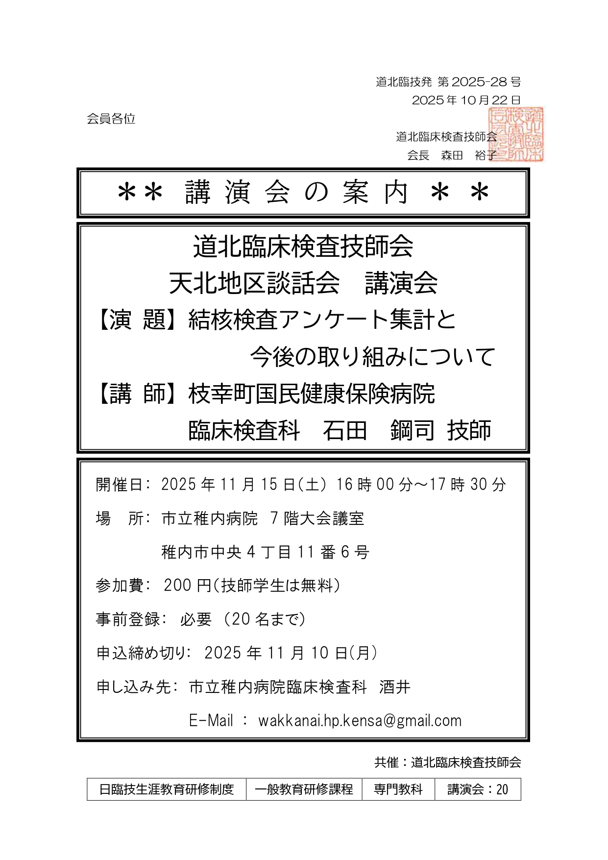 道北臨床検査技師会 天北地区談話会 講演会(11月15日)
