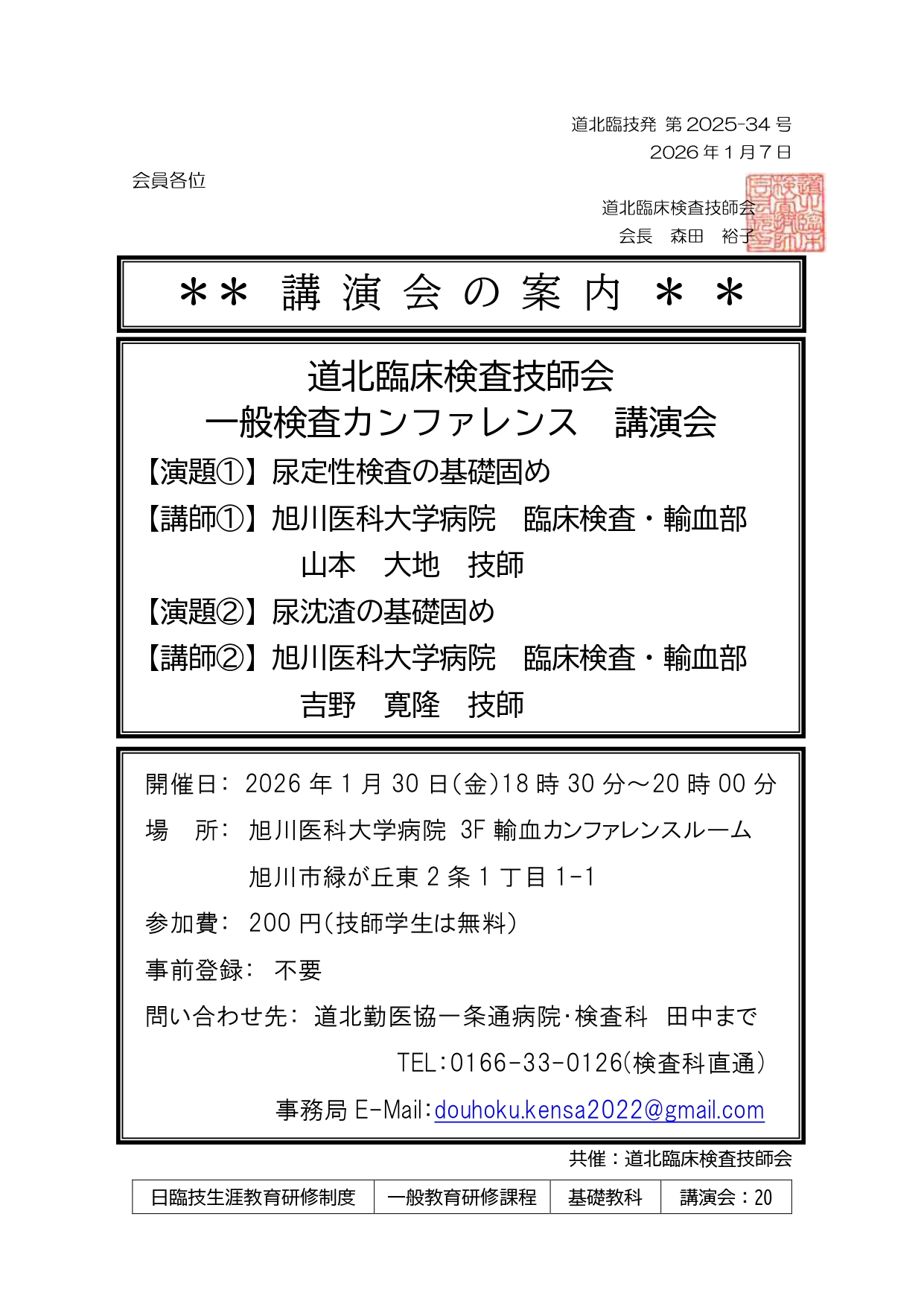 一般検査カンファレンスのお知らせ(1月30日)